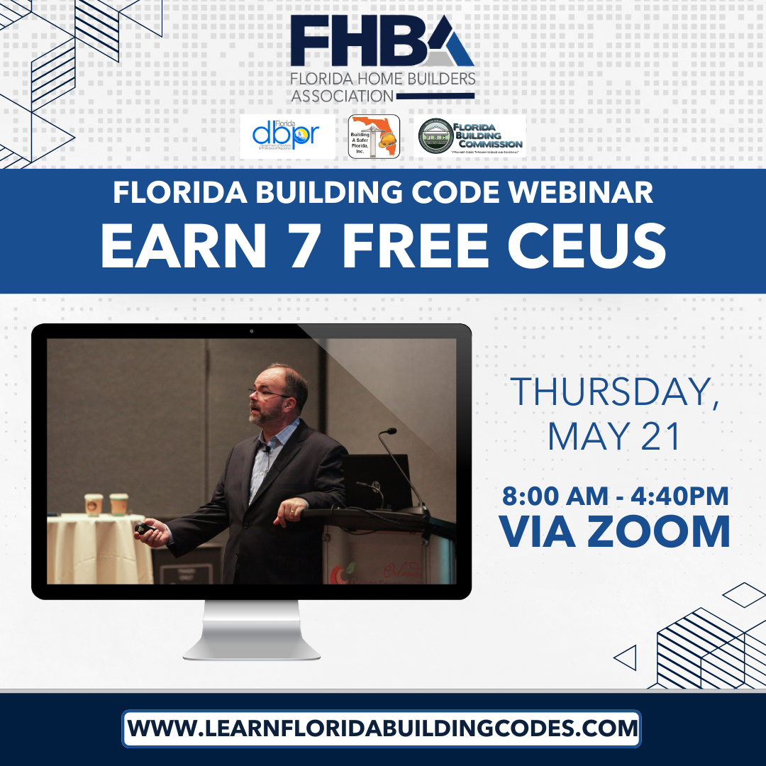 Register here: https://fhba.com/florida-construction-education/florida-building-code/